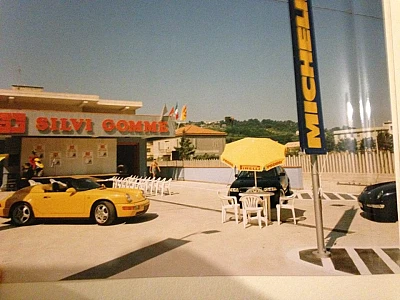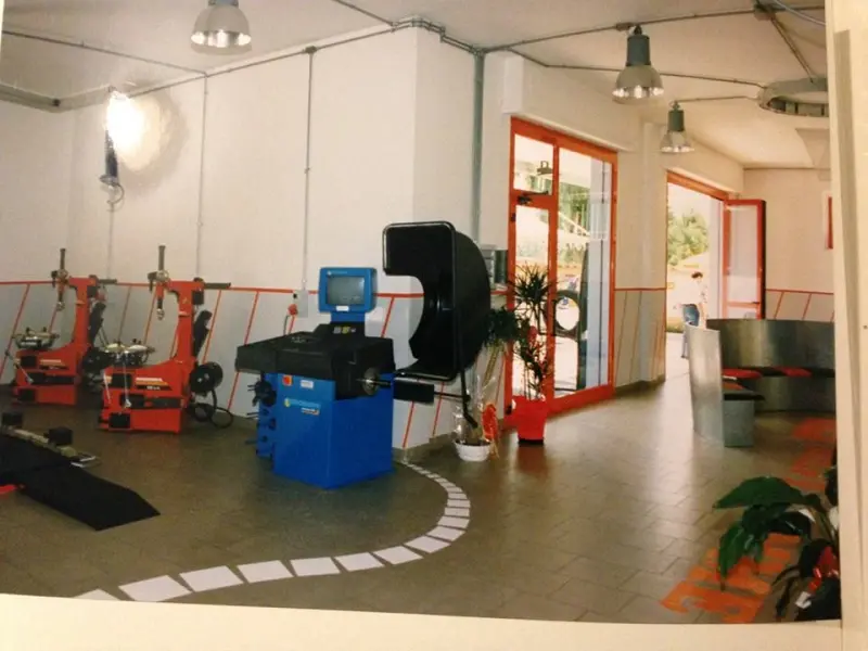 Maggio 1990, la decisione di rinunciare all’assistenza ai mezzi pesanti per concentrarsi al massimo su autovetture e moto. Una decisione sofferta e delicata che si è rivelata vincente. Quella che era una comune officina fu chiusa per dare vita ad un vero e proprio store, una vetrina espositiva con pavimento in grès porcellanato, attrezzatura elettronica di nuova generazione, pistole pneumatiche e manometri di pressione sospesi con bracci meccanici a soffitti senza più ingombri e fastidi a terra. Attrezzature innovative e avveniristiche per l’epoca, come la struttura stessa. L’ambizioso slogan scelto “per gli anni ’90 un centro gomme del 2000” si rivelò una promessa mantenuta.